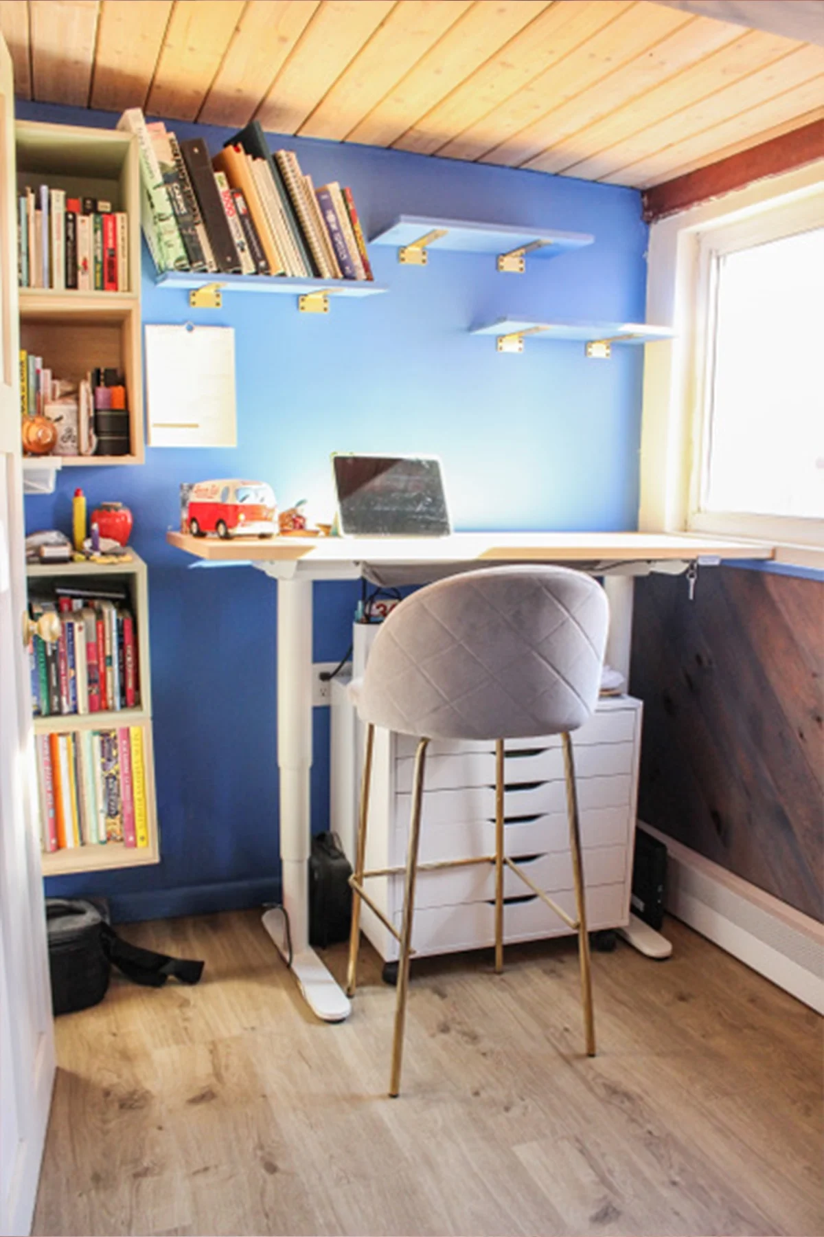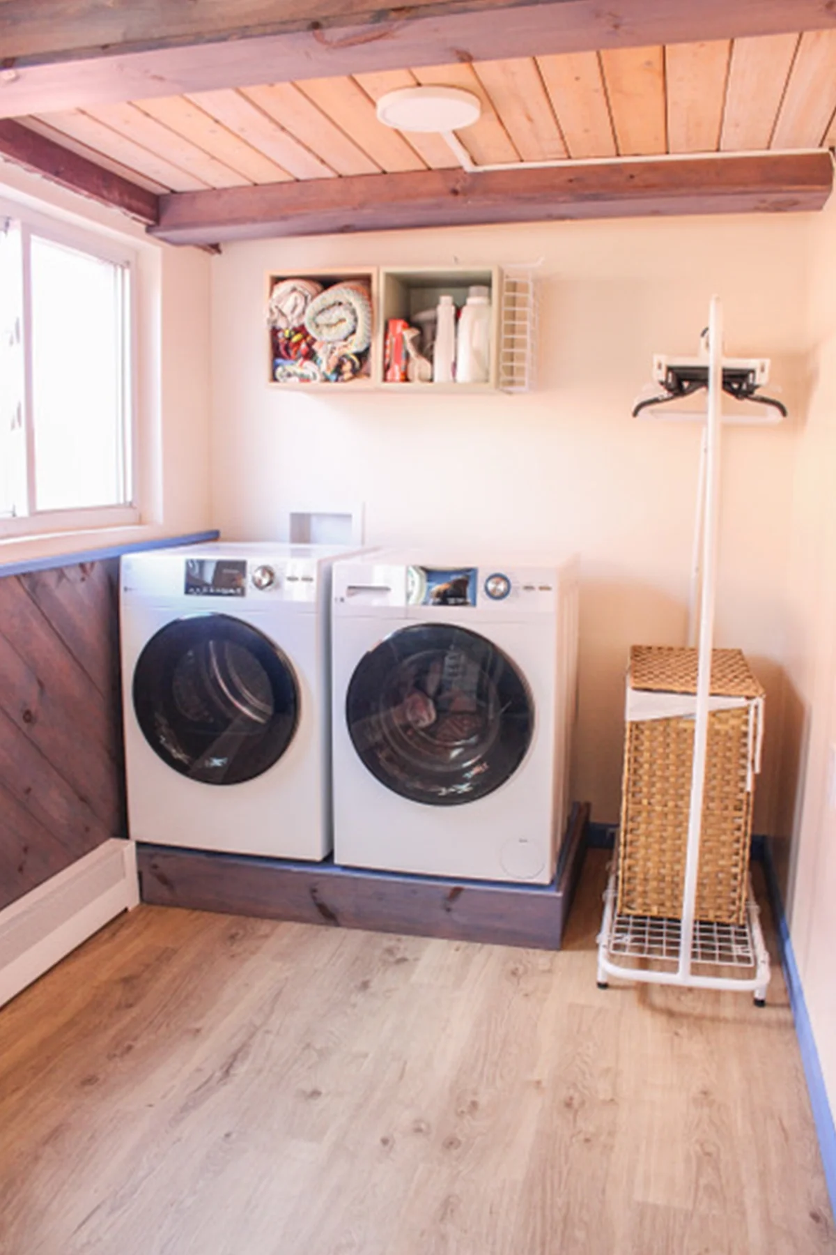 The second bedroom was fully gutted and reimagined as a dual-purpose office and laundry space, maximizing function within the existing footprint.