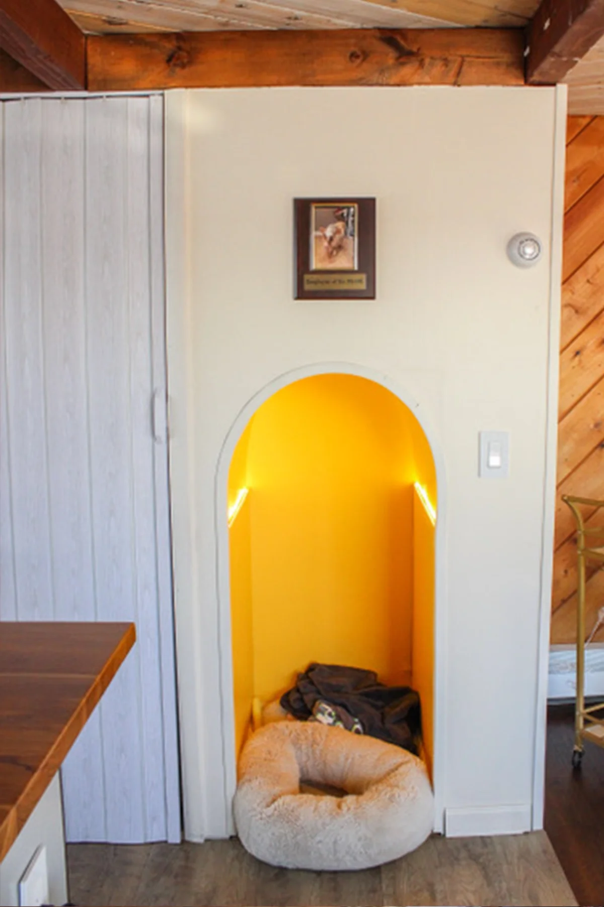 Functional planning was central to the design, with appliances, cabinetry, and utilities strategically positioned to support balanced weight distribution across the vessel. Storage was integrated directly into the structure through custom-built solutions, allowing essential systems and daily-use items to remain accessible without adding excess mass or visual clutter. Mechanical and living functions were layered thoughtfully within the limited envelope, ensuring the space operates efficiently as both a home and a seaworthy structure. The result is an interior where performance, safety, and comfort are seamlessly integrated into the design.